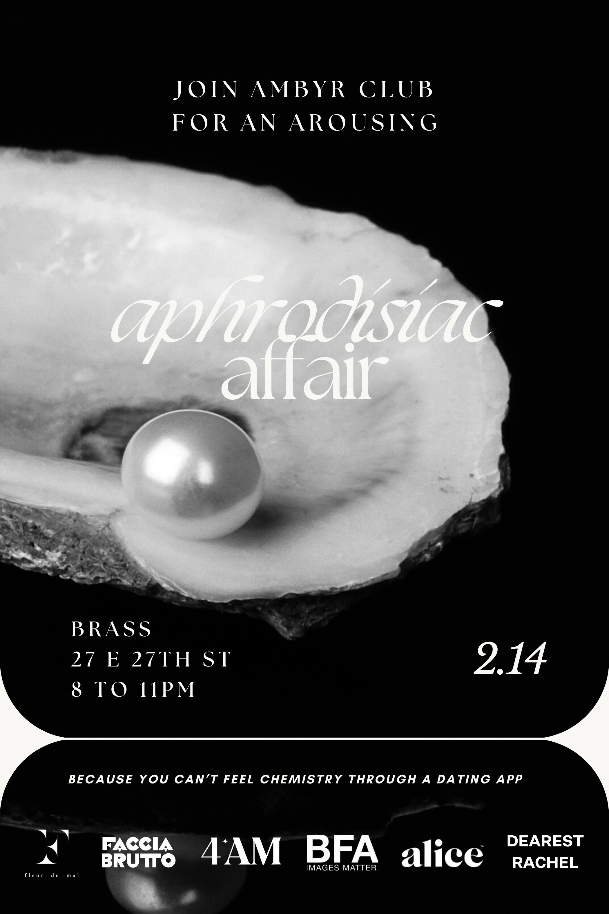 What better way to spend Valentine's Day than at Ambyr Club's Aphrodisiac Affair, an arousing night for New York's eligible singles looking to connect in real life, powered by Ambyr Club and fueled by Alice Mushrooms. Join us at the to-be-opened Brass, brought to you by the team behind Contra and Jac’s On Bond for a sultry evening of dancing and flirting powered by our favorite aphrodisiacs. As we’re the first to host an event before their official opening, don't miss the chance to be among the first to experience it before it becomes impossible to snag a res.
